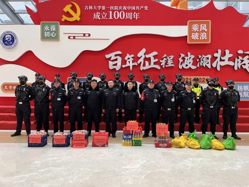 在吉林大學(xué)第三醫(yī)院,慰問組對(duì)所有堅(jiān)守崗位的保安員們送上春節(jié)的慰問和敬意。于總認(rèn)真聽取了駐勤保安隊(duì)長對(duì)崗點(diǎn)春節(jié)期間人員配備、應(yīng)急預(yù)案等具體工作的情況匯報(bào)。于總強(qiáng)調(diào),春節(jié)期間,醫(yī)護(hù)工作者依然堅(jiān)守在工作崗位上,守護(hù)著人民群眾的生命健康與安全,我們更要做到毫不放松、嚴(yán)之再嚴(yán)、細(xì)之再細(xì),與醫(yī)院攜手并肩,以銅墻鐵壁之堅(jiān)保障醫(yī)院平安。